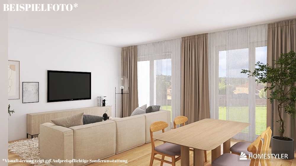 Großzügiger Wohn- und Essbereich mit Zugang zur sonnigen Terrasse – ideal für gesellige Stunden drinnen wie draußen