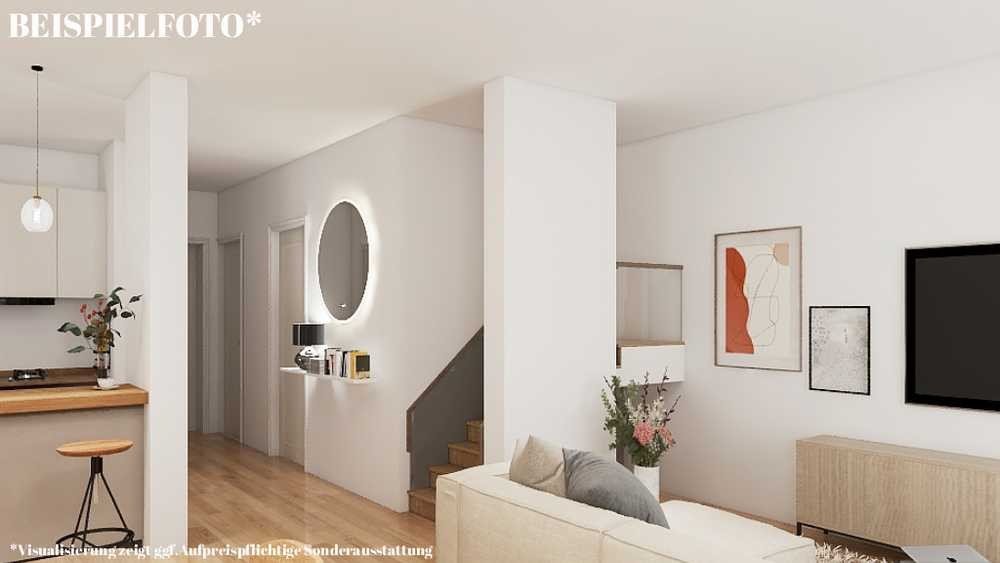 Die Immobilie erstreckt sich über zwei Ebenen und bietet genügend Platz für Familien, Paare oder alle, die modernes Wohnen mit Garten genießen möchten.