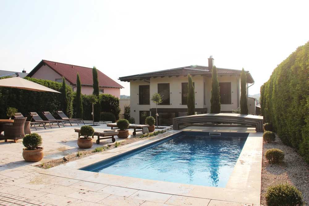 Die liebevoll gestaltete Außenanlage mit Pool, sonnigen Terrassen und üppiger Bepflanzung vermittelt das Gefühl eines privaten Rückzugsortes, an dem jeder Tag wie Urlaub wirkt. Ob beim ersten Kaffee am Morgen, entspannten Momenten am Wasser oder langen Abenden mit Familie und Freunden – dieses Anwesen schenkt Ihnen Lebensqualität auf höchstem Niveau.