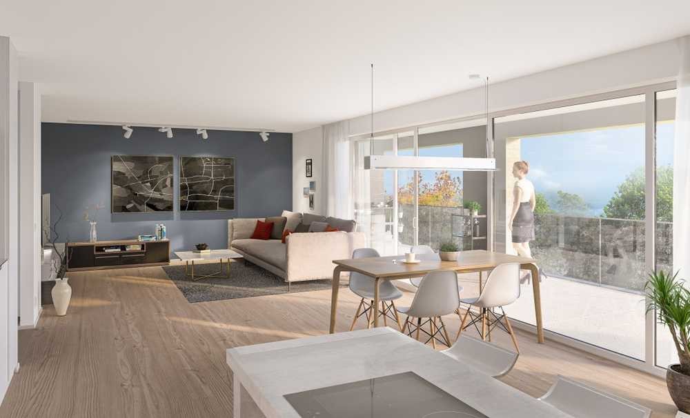 Das Zehnfamilienhaus mit seiner modernen Architektursprache, deren großflächigen Loggien mit Blick in den Park und den bodentiefen Fenstern bietet ein besonderes Wohnambiente.