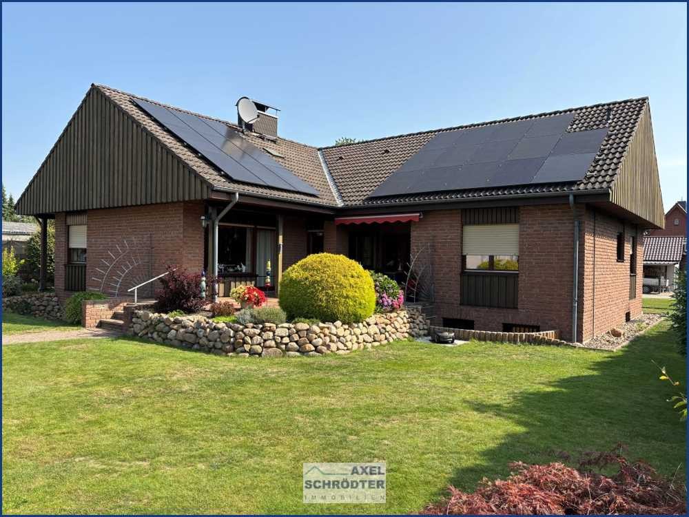 Massiver Winkelbungalow (ca. 121m² Wfl.) mit Vollkeller, Garage und Gewächshaus. Das Haus wurde in den vergangenen Jahre stets gepflegt und umfangreich modernisiert. Ein verglaster Windfang verbindet Haus und Garage. Die Terrasse verfügt über einen überdachten Freisitz.
