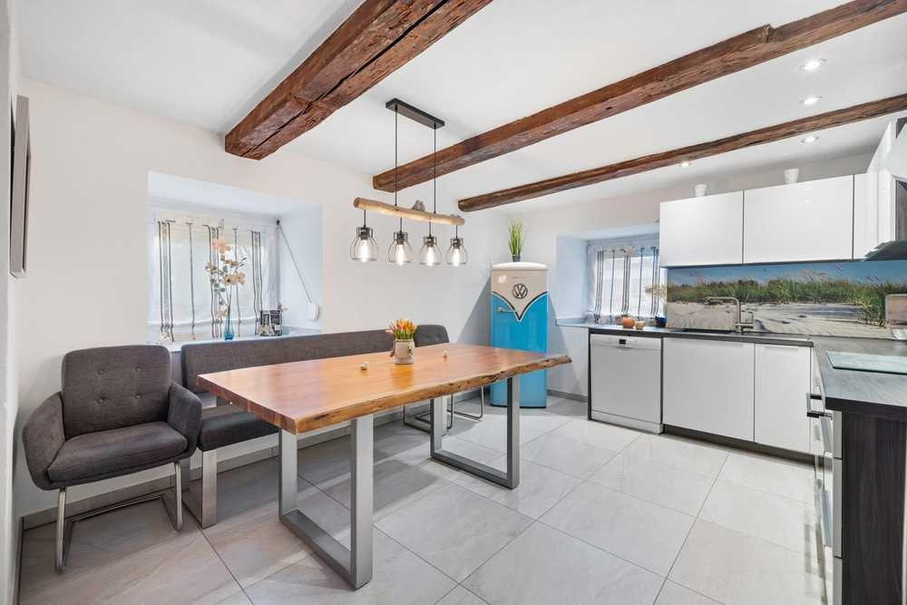 Die Wohnung wurde 2022 aufwendig modernisiert. Neue Bäder, Böden, Leitungen und eine zeitgemäße Heizungsanlage sorgen für ein Wohngefühl, das frisch und gepflegt wirkt. Besonders einladend ist die Einbauküche, die bereits im Kaufpreis enthalten ist. Sie ist funktional, modern ausgestattet und wird schnell zum Mittelpunkt des Alltags. An kalten Tagen schafft der Kaminofen eine warme, behagliche Atmosphäre, die dem Zuhause einen ganz besonderen Charakter verleiht.