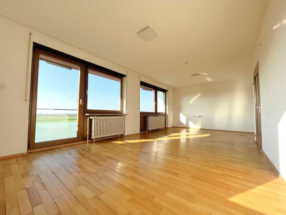 Herzstück der Wohnung ist der helle und offene Wohn- und Essbereich. Durch die großzügigen Fensterflächen genießen Sie hier viel Tageslicht und einen weiten Blick über die umliegende Landschaft. Von hier aus gelangen Sie auch auf den Balkon, der Ihnen einen wunderbaren Ausblick bietet – der ideale Ort, um den Feierabend entspannt ausklingen zu lassen.