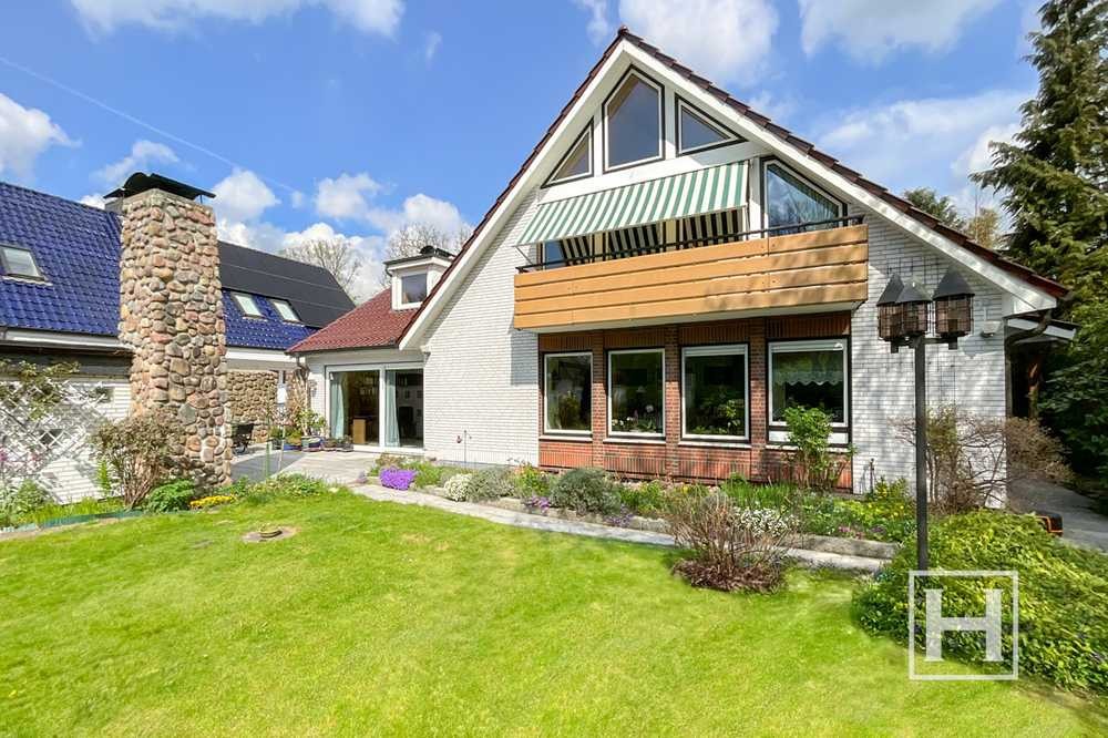 Am Ende einer ruhigen Sackgasse in Tangstedt/Rade erwartet Sie ein außergewöhnliches Einfamilienhaus – umgeben von gepflegten Gärten, altem Baumbestand und stilvoller Nachbarschaft.