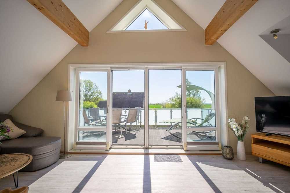 Zum Verkauf steht eine exklusive Obergeschosswohnung in Gollendorf in unmittelbarer Nähe zur Ostsee. Die Wohnung überzeugt durch ihre großzügige Raumaufteilung und hellen Zimmer. Im Wohn-Esszimmer sorgt die bis in den Giebel durchgehende Fensterfront zur Dachterrasse für ein luftiges und weites Raumgefühl. Die großzügige Dachterrasse erweitert den Wohnbereich nach draußen und ist nicht in der Wohnflächenberechnung enthalten. Ein weiterer Balkon bietet einen seitlichen Blick auf die Ostsee.