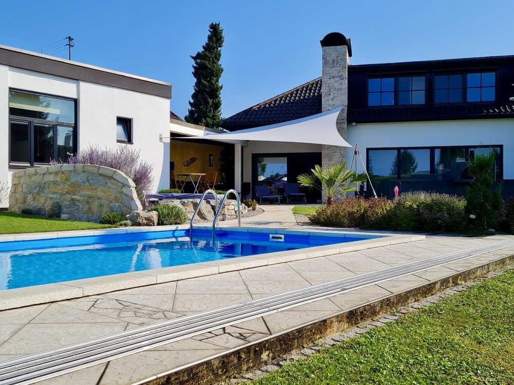 Besonders hervorzuheben ist auch das weitläufige Grundstück mit vielen tollen Details. Ein Überdachter Swimmingpool, Whirlpool, Freisitz und ein schön angelegter und nicht einsehbarer Garten sind ein paar Highlights davon.