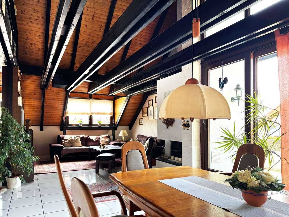 Das Highlight ist eine großzügige 3-Zimmer-Wohnung mit ca. 102 m², die aktuell von den Eigentümern selbst genutzt, bei Verkauf jedoch leer übergeben wird. Zu der Wohnung gehört außerdem ein Studio mit einer Nutzfläche in Wohnqualität von ca. 30 m². Die Wohnung überzeugt mit einem offenen Sichtbalkenwerk, hohen Decken und viel Tageslicht. Der helle Wohn- und Essbereich bietet Zugang zu einem Balkon mit schönem Ausblick und wird durch einen verglasten Wintergarten ergänzt – ideal zum Entspannen oder für Gäste. Zudem gibt es ein Schlafzimmer, eine separate Küche mit Abstellraum, ein großes Badezimmer mit Dusche, Wanne und Doppelwaschbecken sowie ein Gäste-WC.