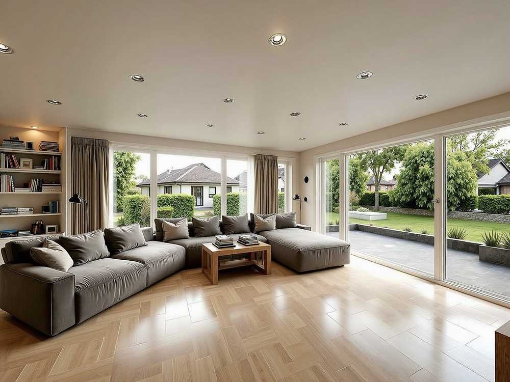 Der großzügige Wohn- und Essbereich mit seinen weitläufigen Fensterfronten bildet das Herzstück des Hauses. Offen, hell und einladend – ein Ort, an dem das Leben pulsiert und der Alltag leicht wird. Die fließenden Übergänge schaffen eine Atmosphäre, die Wohnen, Genießen und Zusammenkommen mühelos vereint.
