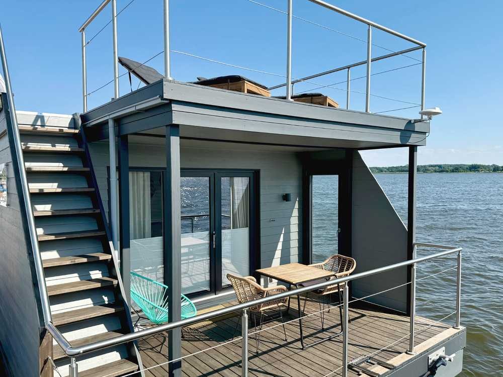 Modernes Hausboot mit Dachterrasse in Top-Lage – Stadthafen Schleswig