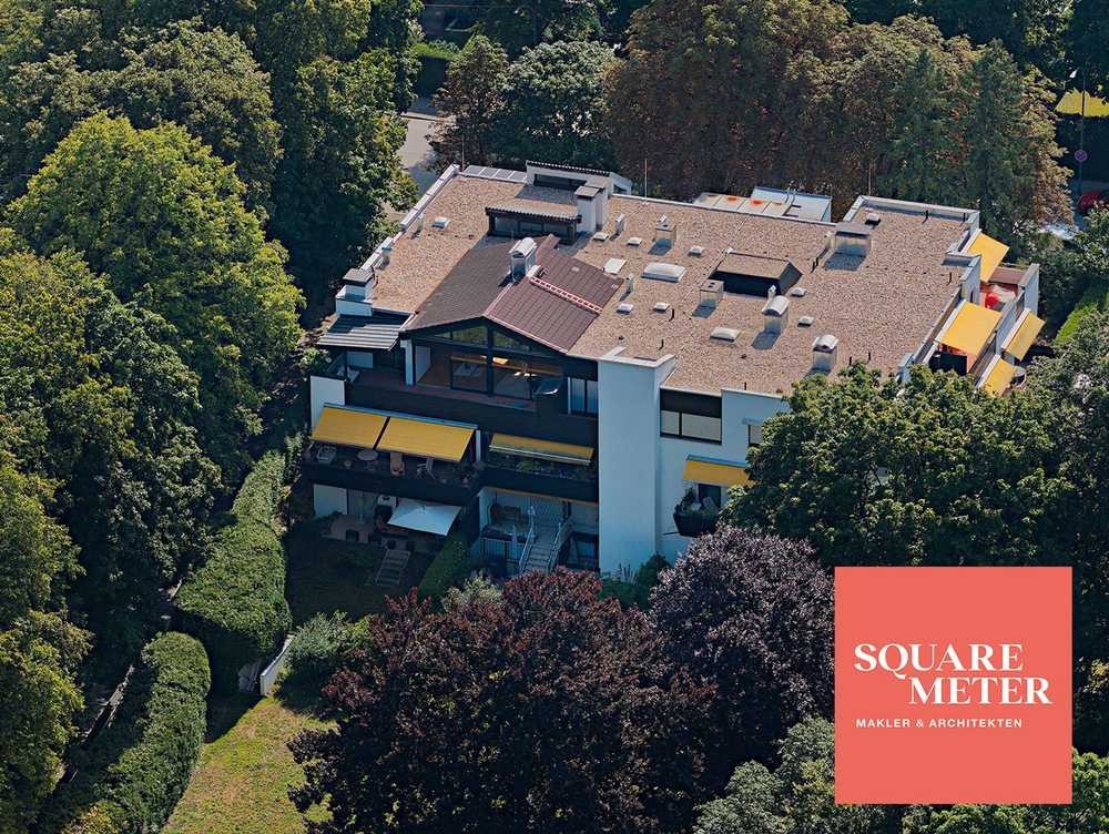 Das Penthouse in der Harthauser Straße 54 ist die markante „Spitze“ der Wohnanlage H54 mit insgesamt 21 Einheiten. Die Wohnanlage wurde 1974 im Stil der Moderne erbaut und gliedert sich in zwei Gebäudeteile mit gemeinsamer Tiefgarage und Poolbereich. Die kontrastreiche Fassadengestaltung aus hellen feinen Putzoberflächen und dunklem Holz und Metalleinlagen verleiht dem Gebäude seine geometrische Klarheit und grafische Wirkung. Die Fassade und das Dach wurden im Jahr 2023 komplett überarbeitet. Die großzügigen Erschließungsflächen verleihen dem Haus ein hochwertiges Erscheinungsbild. Eine Aufzugsanlage verbindet alle Etagen und ermöglicht einen barrierefreien Zugang.
