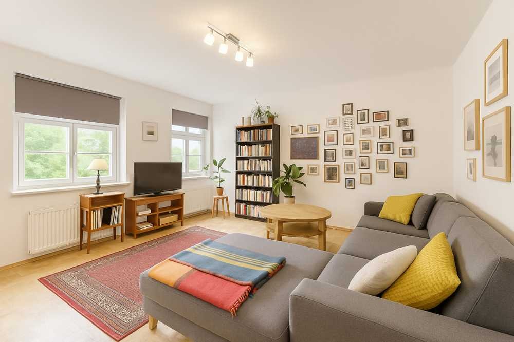 Die Wohnung bietet auf rund 82 m² Wohnfläche ein gut durchdachtes Raumkonzept. Über den großzügigen Flur mit Platz für eine Garderobe sind alle Räume bequem erreichbar. Zwei helle Zimmer mit jeweils mindestens 14 m² eignen sich hervorragend als Schlaf- oder Arbeitsbereich. Die abgeschlossene Küche ist mit neutralen Fliesen ausgestattet und ermöglicht einen Zugang auf den Balkon. Das geräumige Wohnzimmer überzeugt durch seine angenehme Atmosphäre und bietet auch einen direkten Zugang zum ca. 9 m² großen Balkon, der zum Entspannen einlädt.