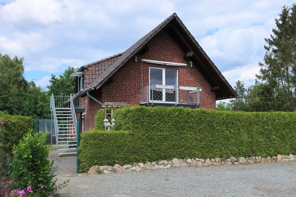 Im Ortsteil Neudorf-Platendorf befindet sich dieses individuelle Zweifamilienhaus. Außerdem gehört eine ehemalige Garage dazu. Sie wurde zu einem Fahrrad- und Geräteschuppen plus Haustechnikraum umgebaut.