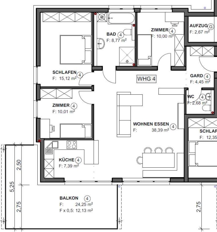 Ein Highlight dieser Wohnung ist ein 24 m² großer Balkon mit Süd-West-Ausrichtung.