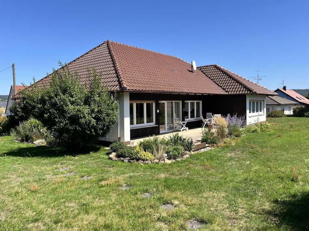 Umgeben von viel Ruhe, Grün, Sonne und einem einzigartigen Blick auf Wiesen und Felder... gemütlicher, familienfreundlicher Walmdachbungalow in angenehmer Siedlungslage. Die Besonderheiten:
