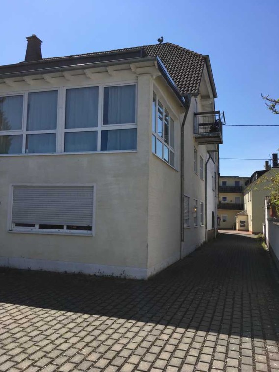 Das Gebäude befindet sich in zweiter Baureihe und erschließt sich durch eine Zufahrt von der Anliegerstraße aus.