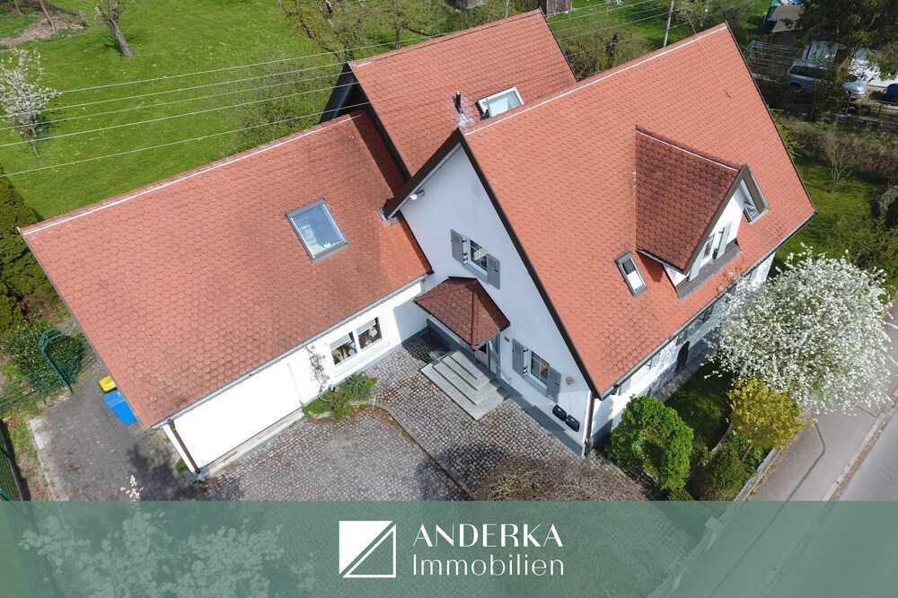 Im Obergeschoss erwartet Sie eine zweite Wohneinheit mit praktischer Garderobe, Badezimmer mit Badewanne, WC, Waschbecken und Waschmaschinenanschluss sowie einer Küche mit Zugang in den offenen Wohn- und Essbereich. Highlight dieser Etage ist die gemütliche Dachterrasse – ideal zum Entspannen an sonnigen Tagen. Ergänzt wird das OG durch ein großes Büro mit Treppe ins Schlafzimmer im Dachspitz sowie einen zusätzlichen, ausgebauten Raum über der Garage.
