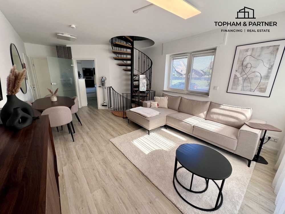 Die hier vorgestellte Eigentumswohnung befindet sich in einem gepflegten Vierparteienhaus in ruhige Wohnlage in Erftstadt-Gymnich und bietet ca. 105 m² Wohnfläche verteilt auf 4 Zimmer. Durch den neuen Zusammenschluss mit der Untergeschosswohnung entstand ein hausähnlicher Wohnraum, der durch eine stilvolle Wendeltreppe verbunden ist. Die Raumaufteilung bietet ein offenes, Maisonette-artiges Wohnkonzept über drei Ebenen, dass das gemütliche Ambiente eines Hauses widerspiegelt. Zur Wohnung gehören zwei private Kellerräume sowie ein separater Waschkeller. Zudem besteht die Möglichkeit, den dargestellten Gartenteil zu erwerben, um Balkon und Gartenstück vollständig zu integrieren. Die Wohnung überzeugt durch stilvolle Details und eine moderne Ausstattung.