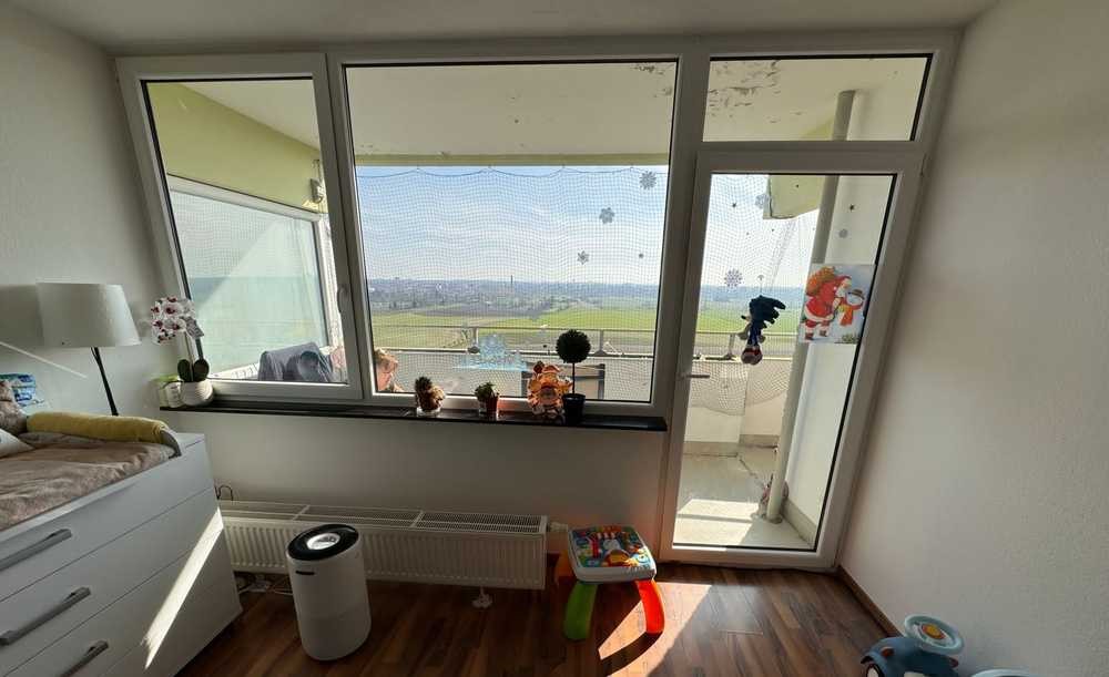 Diese schöne Wohnung in der 12. Etage zeichnet sich durch eine gehobene Innenausstattung aus und kann ab sofort zum Superpreis erworben werden gute Kapitalanlage oder auch für ein schönes Zuhause.In dem Apartment gibt es drei attraktive Zimmer. Das Apartment ist bequem über einen Fahrstuhl zu erreichen. Das monatliche Hausgeld beträgt 850,00 €. Eine Besonderheit ist, dass es nicht nur einen Balkon gibt, sondern Sie auch den Garten am Haus zu Ihrer Erholung nutzen können. Zur Wohnung gehört praktischerweise eine eingebaute Küche, sodass Sie sich die Installation einer neuen Küche sparen können. Auf dem zum Objekt gehörenden Stellplatz können Sie Ihr Auto bequem parken. Ein Kellerraum bietet Stauraum für Habseligkeiten. Derzeit ist die Eigentumswohnung vermietet, seit der letzten neu Renovierung gab es nur ein Bezug .Fast die komplette Wohnung ist mit hochwertigen Fliesen ausgestattet,das Kinderzimmer/Arbeitszimmer, das geräumige Schlafzimmer und das Wohnzimmer sind mit qualitativen Laminatboden verlegt worden.Das Bad ist schön im modernen Stil,bis zur Decke gefliesst worden mit Badewanne und Tageslichtfenster und schönem stylischen Handtuchhalter als Heizung. moderne Heizungen vorhanden.Das große offene Wohnzimmer bietet viel Platz für die Familie und bietet vom 12 Stock eine schöne Aussicht mit Blick aufs angrenzende Feld das bis zum örtlich führenden Main reicht.Mit einer Fensterbank aus Marmor ist das Wohnzimmer mit großen Fenstern ausgestattet,was viel Tageslicht in den Raum scheinen lässt,auf dem schönen geräumigen Sonnenbalkon der viel Platz bietet und mit Milchglas an den Seiten zur Abtrennung der Wohneinheiten. Schlafzimmer verfügen über elektronische Rolläden. Alles in einem in einem im guten modernen Zustand. Großer Spielplatz und Grünflächen sind im Aussenbereich vorhanden.Im Innenhof eröffnet ein neuer Lebensmittelmarkt.Die komplette Anlage ist Kameraüberwacht.Es gibt 2 große Aufzüge mit Kameras.Derzeit wird der gesamte komplex aufgewertet Gäste Pp vorh.