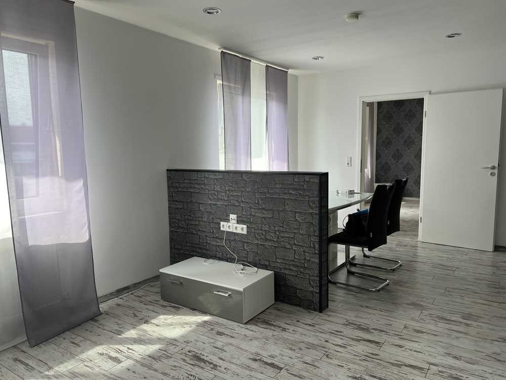 Der Wohn- und Essbereich sind durch einen Raumteiler optimal voneinander getrennt.