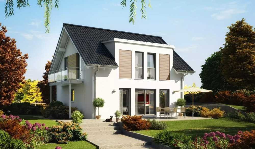 Was gibt es Schöneres, als an einem warmen Sommermorgen mit der Familie auf der eigenen Terrasse zu frühstücken und dabei den Ausblick über den Garten zu genießen? Weit sind die Fenstertüren zum weitläufigen Wohn-, Ess- und Kochbereich geöffnet. Ein leichter Luftzug bringt die Vorhänge zum Schwingen und trägt den Duft von frischem Grün und süßen Blüten durch das gesamte Haus - ein wahrer Wohntraum für die ganze Familie. Schon von außen wird deutlich, wie viel Leben und Fröhlichkeit in diesem Fertighaus steckt. Der quadratische Baukörper wird von einem Zwerchgiebel akzentuiert, dessen modernes Pultdach einen schönen Kontrast zum klassischen Satteldach mit seinen weiten Dachüberständen bildet. Auf der Giebelseite befindet sich ein sonniger Balkon, der von zwei filigranen Stützen getragen wird. Beide Ebenen sind mit großzügigen Verglasungen ausgestattet, die die Innenräume in ein luftig-leichtes Ambiente tauchen. Sehr gemütlich wirken die partiellen Holzverschalungen am Obergeschoss. Sie verweisen bereits auf das wohngesunde Raumklima im Innern. Denn wie alle Bien-Zenker Häuser wird auch dieses Familiendomizil hauptsächlich aus dem nachwachsenden Naturbaustoff gefertigt. Reinkommen, durchatmen, wohlfühlen - so könnte das Motto lauten. Das Raumkonzept orientiert sich an den Bedürfnissen einer vierköpfigen Familie: Großzügige Gemeinschaftsräume im Erdgeschoss und behagliche Rückzugsbereiche im Dachgeschoss werden kombiniert mit cleveren Stauraumlösungen. An den Kochbereich schließt sich beispielsweise eine geräumige Speisekammer an, in der alle Vorräte ordentlich verstaut werden können. So bleiben die Küchenschränke frei für Geschirr und Töpfe. Die Nische neben der Treppe bietet sich an für einen großen Garderobenschrank oder schöne Einbauregale. Hier wird kein Platz verschwendet! Weitere Abstellflächen finden sich im Technik- bzw. Hauswirtschaftsraum. Damit funktioniert das Haus auch ohne Keller wunderbar. Das Dachgeschoss teilt sich in zwei gleich große Kinderzimmer, den Elternschlafraum mit Ankleidebereich und Wandnische und ein geräumiges Bad, das mit einer Regendusche und einer Whirlwanne zur privaten Wellness-Oase avanciert.