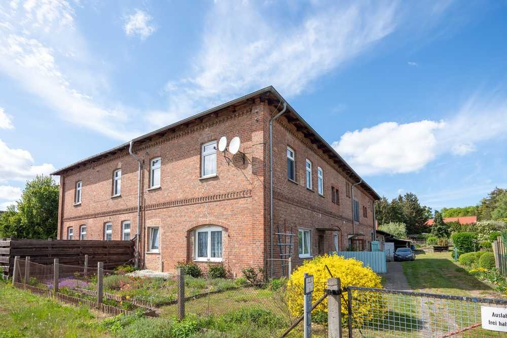 Im Erdgeschoss des Backsteinhauses befindet sich das Wohnzimmer, die Küche, Flur, ein Abstellraum, das Bad mit Dusche und eine Kammer. Das Schlafzimmer und zwei weitere Zimmer befinden sich im Obergeschoss. Die Kachelöfen in allen Wohnräumen sind funktionstüchtig und sehr gut erhalten, können also alternativ zur verbauten Gasheizung betrieben werden. Direkt an den Wohnbereich schließt sich der ehemalige große Wirtschaftstrakt mit vielen Ausbaumöglichkeiten an. Die Nebengebäude mit Garage sind an das Bauernhaus angebaut. Hier bieten sich unbegrenzte Möglichkeiten für eine individuelle Kleintierhaltung. Der im hinteren Bereich des Grundstücks befindliche Garten lädt zur Bewirtschaftung, z. Bsp. als Alleinversorger ein.