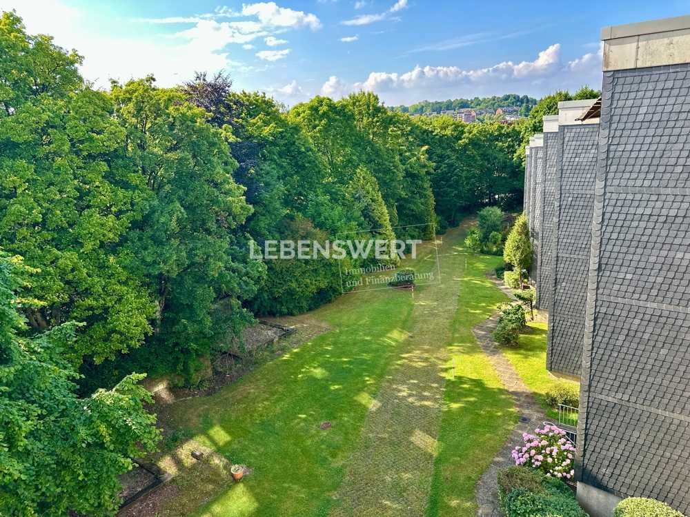 Der großzügige Wohnbereich bietet Zugang zum Balkon mit Westausrichtung – hier genießen Sie nicht nur die Nachmittags- und Abendsonne, sondern auch einen weiten, grünen Ausblick über die Dächer Velberts.