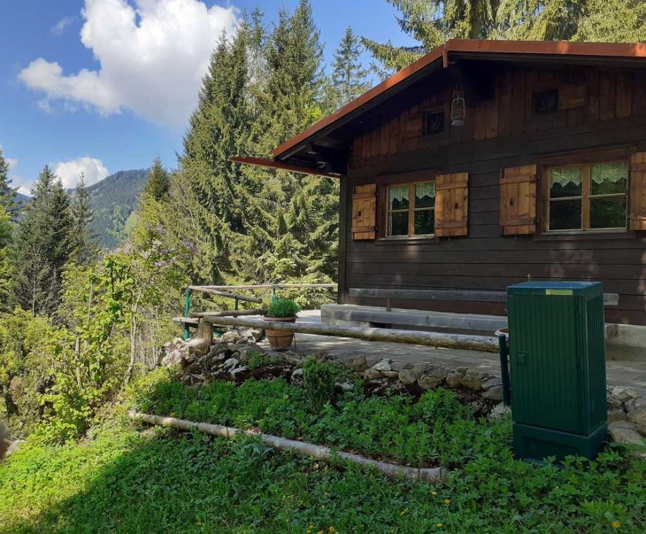 - Zusätzlich im Garten gefasste Quelle mit Holzbrunnen