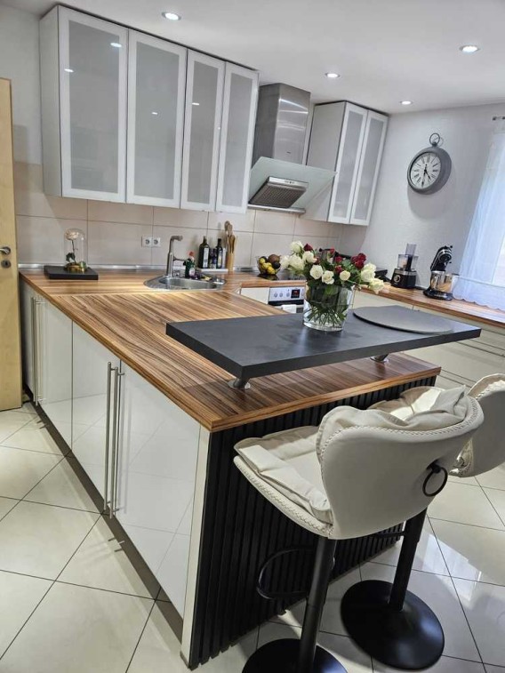 Großzügige 10 Meter lange Nobilia-Einbauküche mit Kochinsel, Bartheke und außergewöhnlich viel Stauraum – der perfekte Treffpunkt für Familie und Freunde
