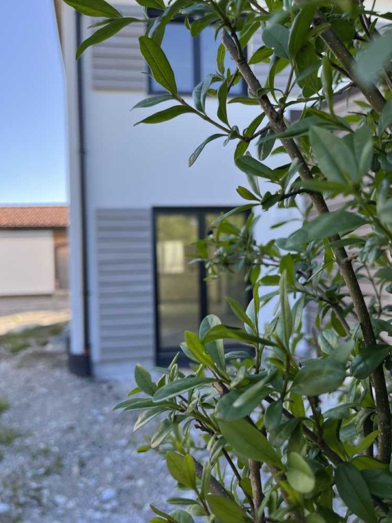 Auch die Ausstattung hat es in sich: massive Ziegelbauweise, Energieeffizienz A+, Photovoltaik mit Speicher, Wärmepumpe, kontrollierte Wohnraumbelüftung. Dazu Holzdielen, große Fliesen, bodengleiche Duschen, ein Free@Home-Bus-System und vieles mehr. Kurz gesagt: modern, nachhaltig und mit Liebe zum Detail gebaut von regionalen Handwerkern.