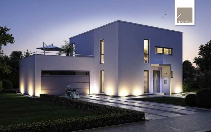 Die zum Entwurf passende Doppelgarage mit Dachterrasse ergänzt das Haus auf Wunsch perfekt.
