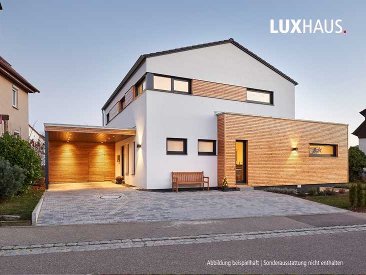 Die unterschiedlichen Ebenen und Ansichten machen das Objekt spannend und verleihen ihm etwas ganz Eigenes. Große Fenster sorgen für viel Licht im Haus, eine Terrasse lädt zum Verweilen ein, Innen und Außen verschmelzen zu einem freundlich einladenden Gesamteindruck. (Abbildung zeigt Sonderausstattung)