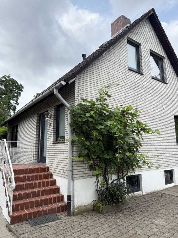 Dieses gepflegte, freistehende Einfamilienhaus aus dem Jahr 1977 bietet auf ca. 95 m² Wohnfläche und einem großzügigen Grundstück von 608 m² ein behagliches Wohnambiente – perfekt für Paare oder kleine Familien. Bereits die private, langgezogene Zufahrt vermittelt ein angenehmes Gefühl von Privatsphäre. Ein PKW-Stellplatz direkt vor dem Haus sorgt für kurze Wege. Über ein kleines Eingangspodest mit neuer Haustür betreten Sie das Haus.