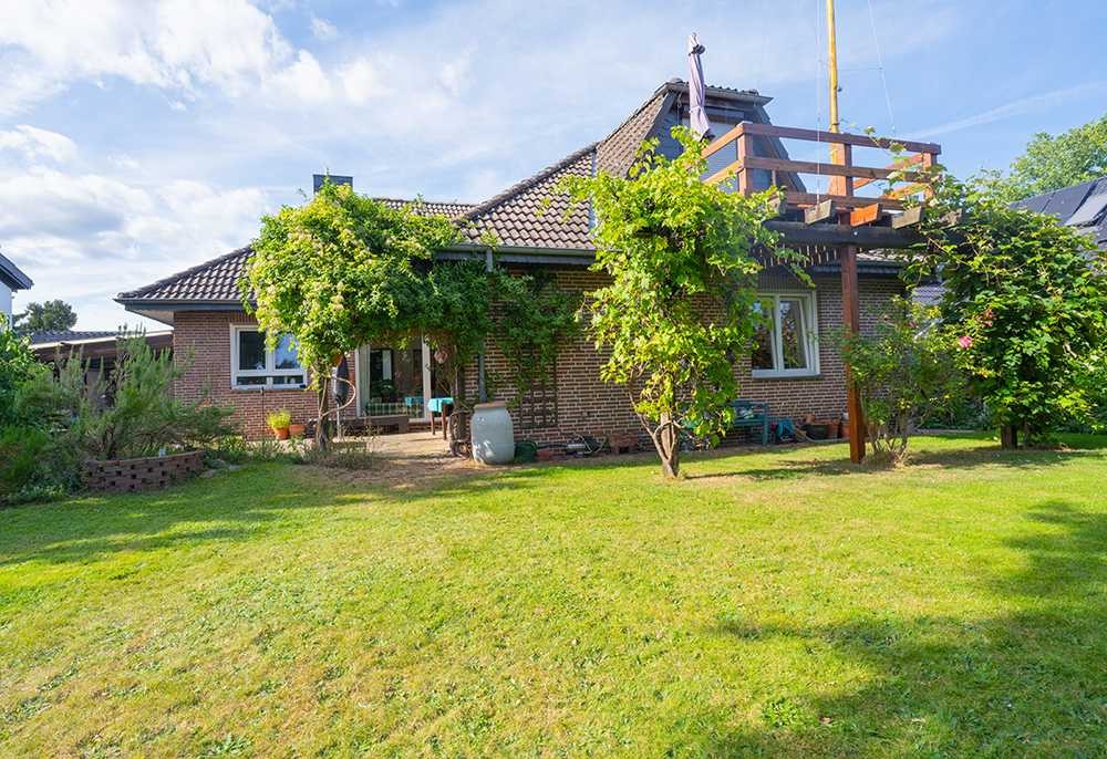 Der 1979 erbaute Winkelbungalow überzeugt durch seine großzügige Raumaufteilung und hochwertige Ausstattung. Mit einer Wohnfläche von 165m² bietet das Haus sechs gut geschnittene Zimmer, die viel Platz für die ganze Familie bieten.