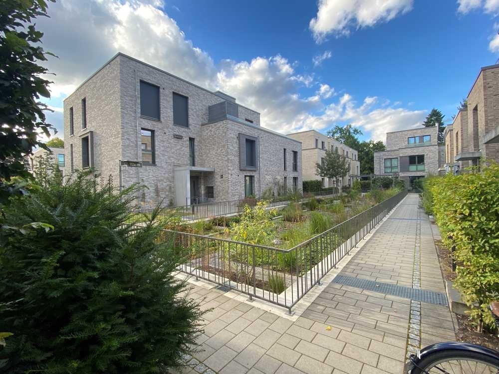 Das "Adagio" in Othmarschen bildet ein Ensemble von modernen Stadthäusern & Stadtvillen, welches mit kleinen Teichen, Sitzmöglichkeiten, einem Spielplatz und kreativer Begrünung aufwartet.