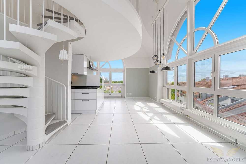 Diese außergewöhnliche Dachgeschosswohnung mit Galerie überzeugt durch ihre gelungene Kombination aus urbanem Wohnkomfort und architektonischem Charme. Auf großzügiger 101 qm Wohn-Nutzfläche (71 qm WFL+30 qm NF) und 2,5 Zimmern erwartet Sie ein lichtdurchfluteter, offener Wohn- und Essbereich mit 4,50 m-Raumhöhe und großzügiger Galerie. Bodentiefe - und deckenhohe Rundbogenfenster setzen architektonische Akzente und bieten einen urbanen Blick ins Ortszentrum von Unterhaching.