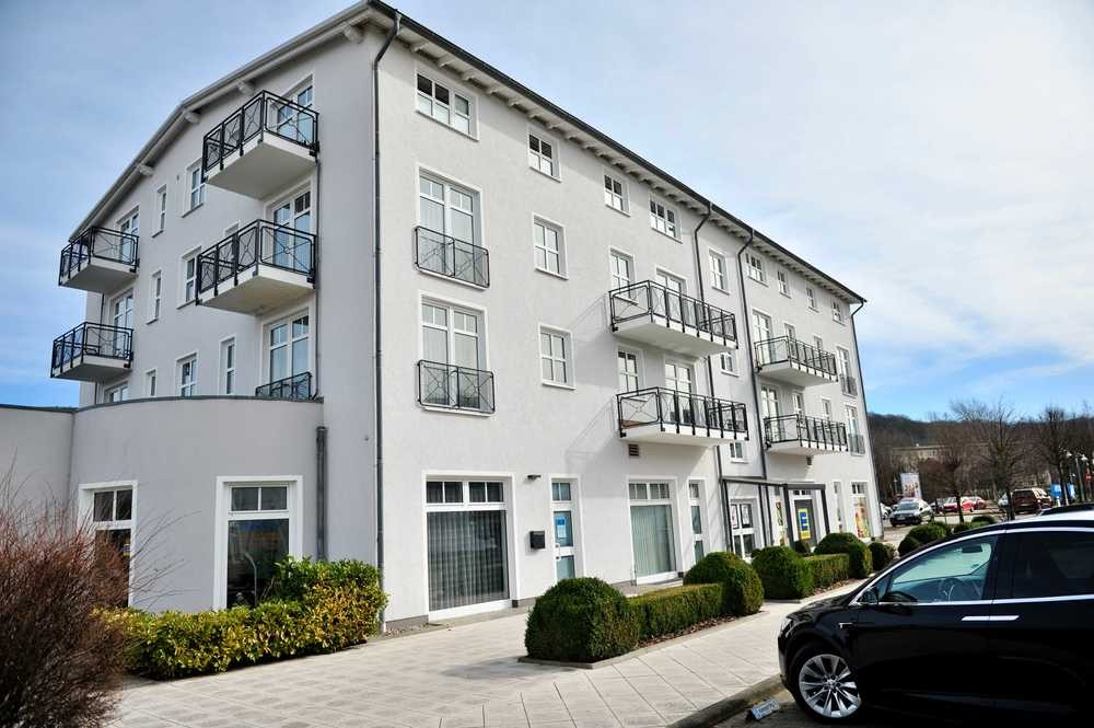 Das Haus Hühnergott ist massiv gebaut und in weiß gehalten. Es besitzt einen Personenaufzug sowie direkt anliegende Außenstellplätze.