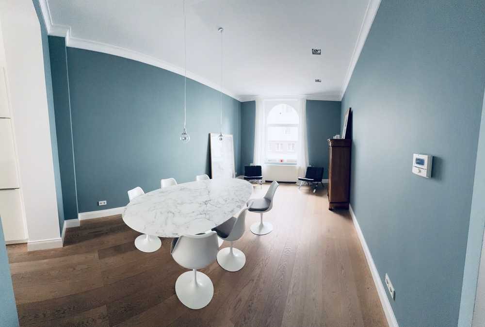 Diese schöne, vollständig renovierte Altbauwohnung in Hochparterre besticht durch eine luxuriöse Innenausstattung, z. B. Einbauschränke in den Zimmern & Flur, seamless eingebaute Deckenleuchten in den Zimmern, Wohnzimmer und Bad, Downlights im Flurboden, Dornbrachtarmaturen in Bad und Küche der selben Serie.