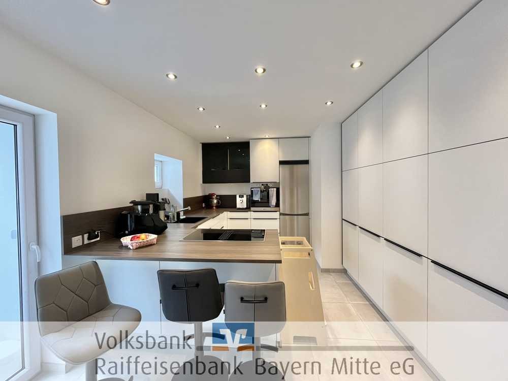 • Moderne Einbauküche: Hochwertige Elektrogeräte und durchdachtes Design machen Kochen zum Vergnügen.
