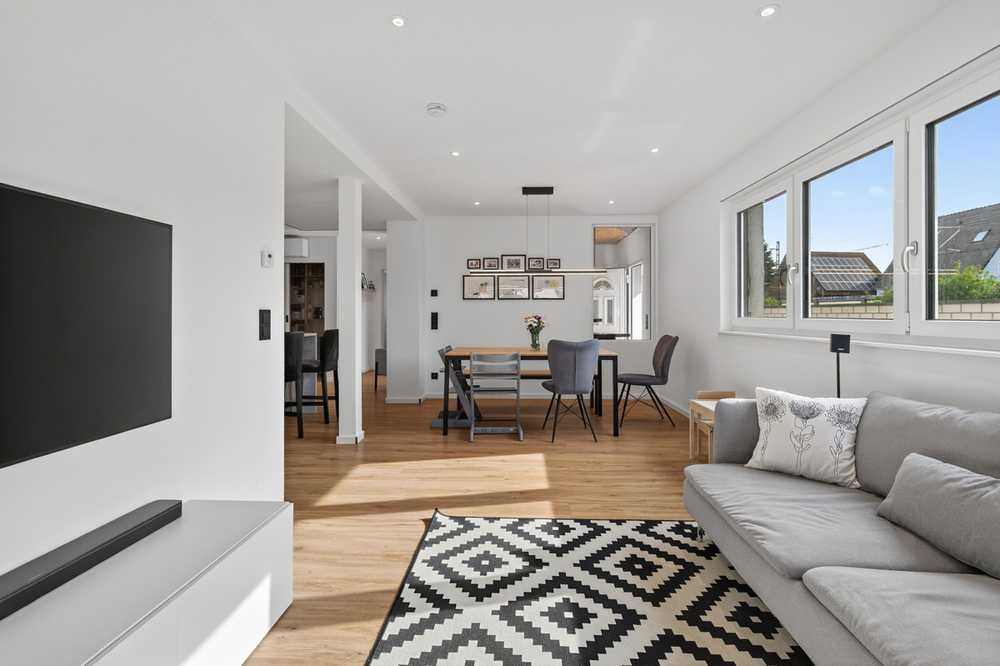 Das freistehende Einfamilienhaus wurde zwischen 2022 und 2024 aufwendig kernsaniert und architektonisch komplett neu gedacht. Über 360.000 € flossen in energetische Maßnahmen, hochwertige Ausstattung und einen Grundriss, der modernen Familienalltag versteht. Dabei entstand ein Ort, an dem Ihre Kinder glücklich groß werden können – ohne Baustress und mit einem klaren Fokus auf Wohnqualität.