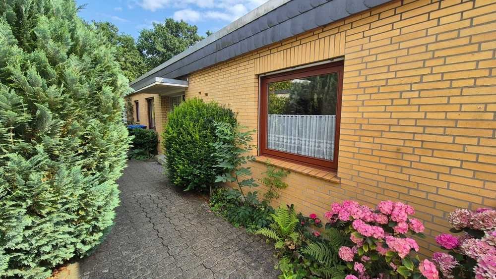 Dieser ebenerdige Bungalow in Waldnähe könnte schon bald Ihr neues Zuhause sein. In einer ruhigen Wohnsiedlung gelegen, gehen ganz klassisch von einem langen Flur alle Räume ab.