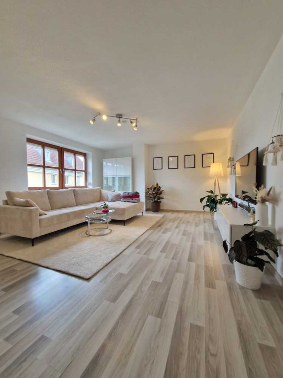 Das große Wohnzimmer bietet viel Raum und eignet sich perfekt als kombinierter Wohn- und Essbereich.