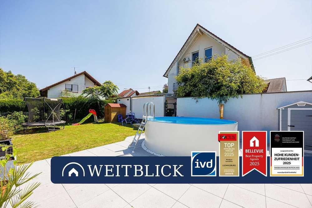 Besonders hervorzuheben ist der Pool im Garten, der in Kombination mit der ruhigen Umgebung eine private Wellnessoase direkt am eigenen Zuhause schafft. Der Pool ist mit einer Wärmepumpe ausgestattet, mit der sich das Wasser beheizen lässt, sodass er auch an kühleren Tagen problemlos genutzt werden kann. Eine praktische Solardusche im Garten ermöglicht zudem eine erfrischende Dusche direkt vor Ort. Der Garten selbst lädt mit seiner gepflegten Rasenfläche zum Entspannen, Spielen und Verweilen ein. Ein Gartenhaus bietet zusätzlichen Stauraum für Geräte und Zubehör. Ergänzend dazu steht Ihnen ein separater Kellerraum zur Verfügung, der weiteren Stauraum schafft. Abgerundet wird das Angebot durch einen eigenen Garagenstellplatz und einen Außenstellplatz, der sicheren und komfortablen Parkraum bietet.