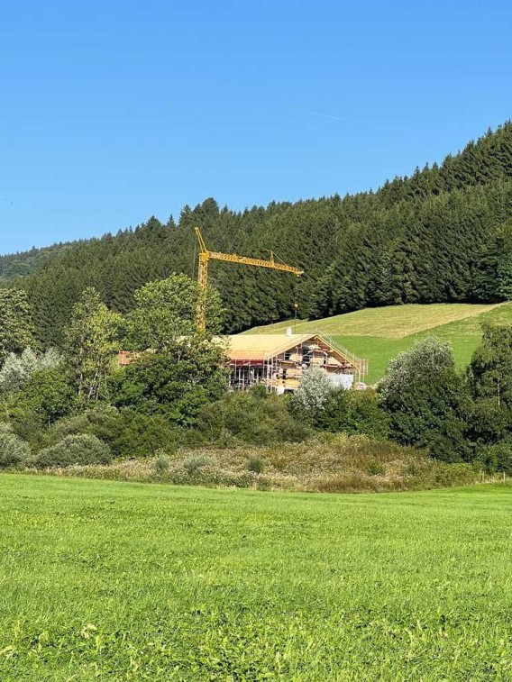 Es handelt sich um ein ehemaliges Bauernhaus in Alleinlage, dies wurde abgerissen und aktuell ist der Rohbau mit Dach im groben fertig.