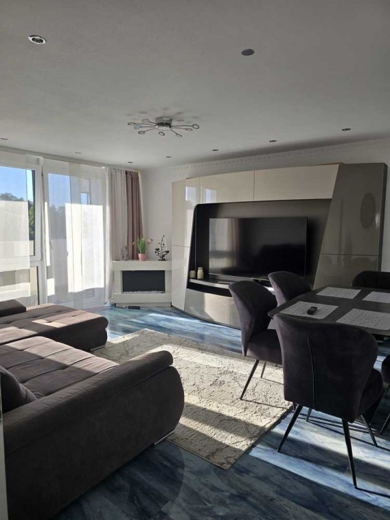 Auf ca. 107 m² erwarten Sie ein großes Wohnzimmer mit Zugang zum Balkon sowie drei Schlafzimmer – eines davon ebenfalls mit Balkonzugang. Das modern geflieste Badezimmer verfügt über eine Dusche, zusätzlich gibt es ein separates WC. Ein Abstellraum in der Wohnung bietet praktischen Stauraum.