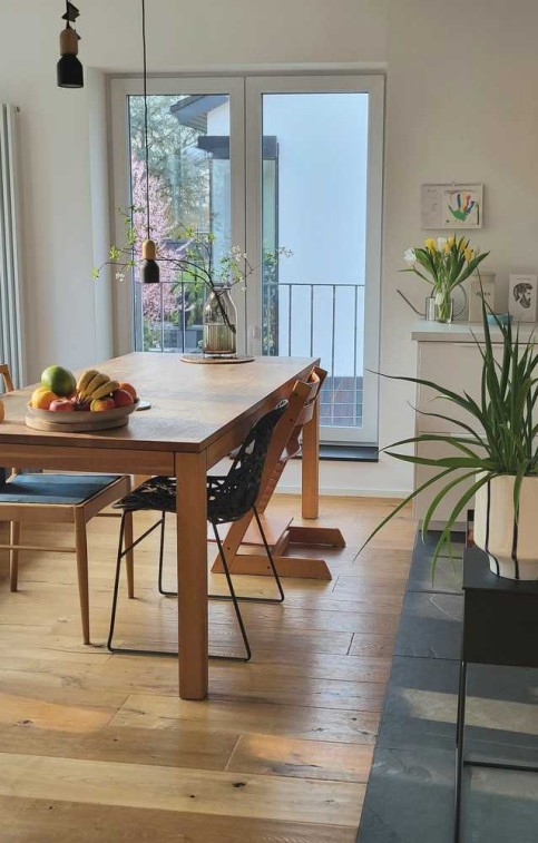 Eichenparkett von Kährs in allen Wohn- und Schlafräumen- für ein warmes, wohnliches Ambiente.