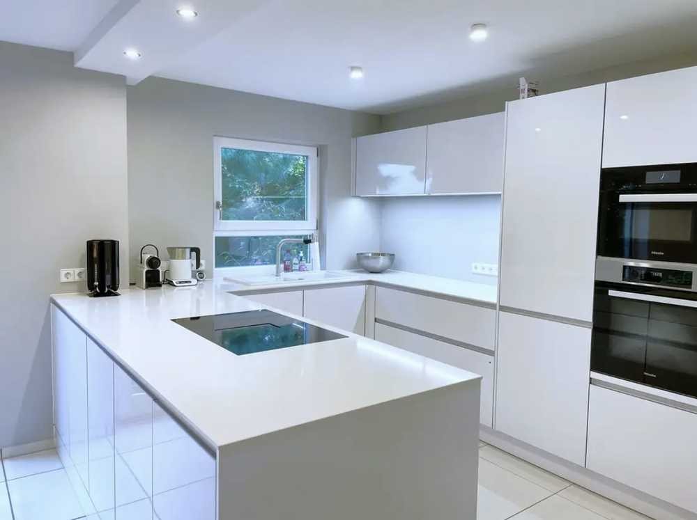 Das Herz des Hauses bildet das offene und helle Erdgeschoss. Hier verbindet ein großzügiges Esszimmer nahtlos die Küche mit dem Wohnbereich, was für eine freundliche und einladende Atmosphäre sorgt. Die deutsche Markenküche lässt mit ihrer Ausstattung und ihren top Markengeräten keine Wünsche übrig.