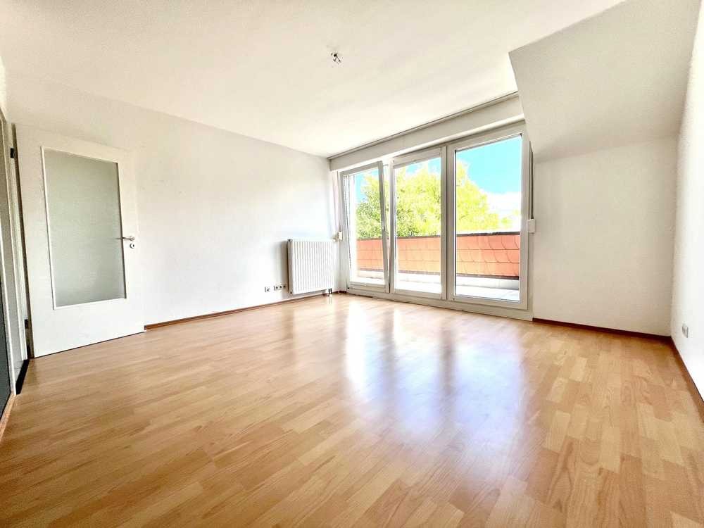 Das Raumangebot umfasst ein geräumiges Wohnzimmer mit Zugang zum sonnigen Südwestbalkon, eine Küche auch mit Zugang zur Loggia, ein Tageslichtbad mit Badewanne, Dusche und WC sowie ein Schlafzimmer. Darüber hinaus bietet die Wohnung einen wohnlich ausgebauten Spitzboden (29 qm Boden, 13qm Netto-Fläche) mit Heizung, Dachflächenfenster und Strom-/Kabelanschluss - ideal als Arbeits-, Gäste- oder Hobbybereich (Nutzfläche).