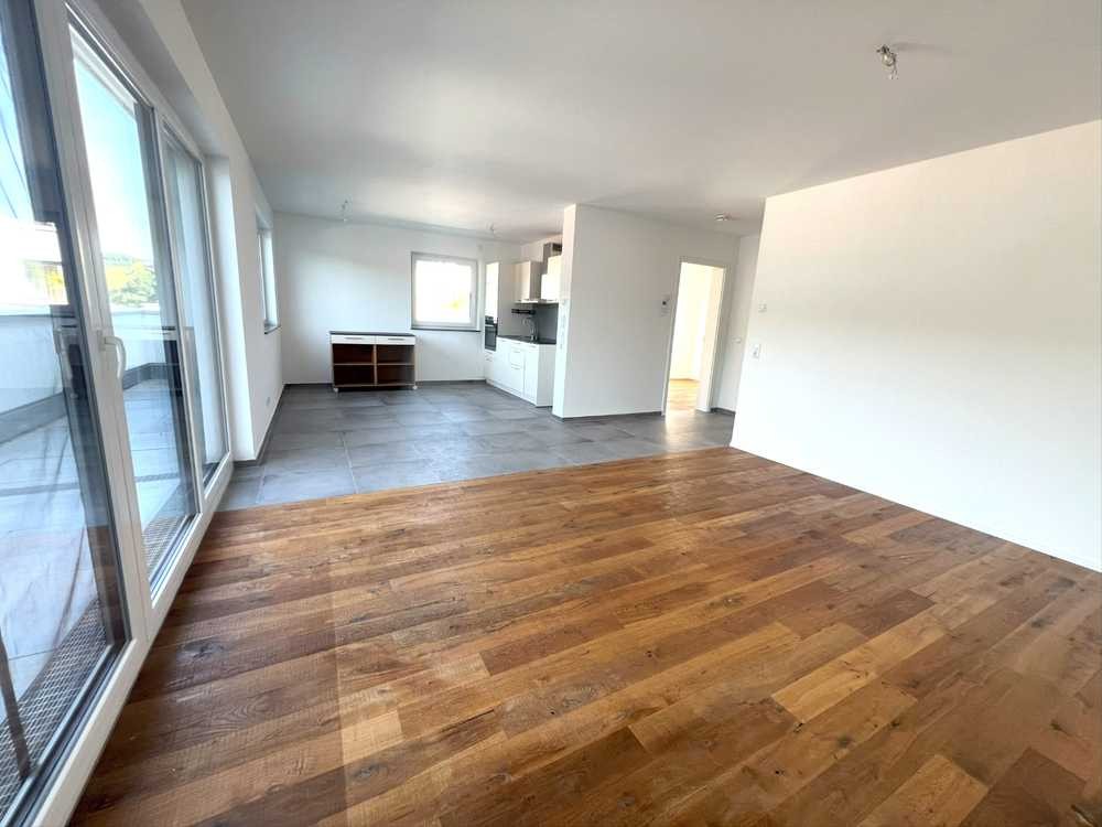 Modern gestaltete Räume, viel Platz und eine große Dachterrasse mit traumhaftem Ausblick in die Natur. Das könnte bald ihr neues Zuhause werden....Die 2019 erbaute Wohnung ist mit 2 Zimmern ausgestattet und bietet durch helle Räume und botentiefe Fensterfronten ein modernes Wohnambiente. Der Wohn- Essbereich bildet hier das Herzstück der Wohnung. Hier ist genug Platz, um zusammen zu essen oder es sich auf dem Sofa gemütlich zu machen. Auf der angrenzenden, vom Wohnzimmer begehbare Dachterrasse können Sie den Sommer mit einer tollen Aussicht in vollen Zügen genießen. Hier haben Sie ihre eigene kleine Wohlfühloase in der Natur. Ein Abstellraum auf der Terrasse bietet Ihnen weitere Lagermöglichkeiten. Die offene, großzügige Küche ist mit einer Küchenzeile ausgestattet und garantiert Back und Koch Vergnügen. Ein großzügiges Schlafzimmer, welches ebenfalls einen Zugang auf die Dachterrasse bietet sowie ein großzügiges Tageslichtbadezimmer mit Badewanne und begehbarer Dusche schließen sich an den Wohnraum an. Hier bleiben keine Wünsche offen. In der gesamten Wohnung wurde viel Wert auf ein modernes, harmonisches Raumamiente gelegt, welches sich in den schönen, gepflegten Laminatböden sowie im warm gefliesten Badezimmer widerspiegelt.