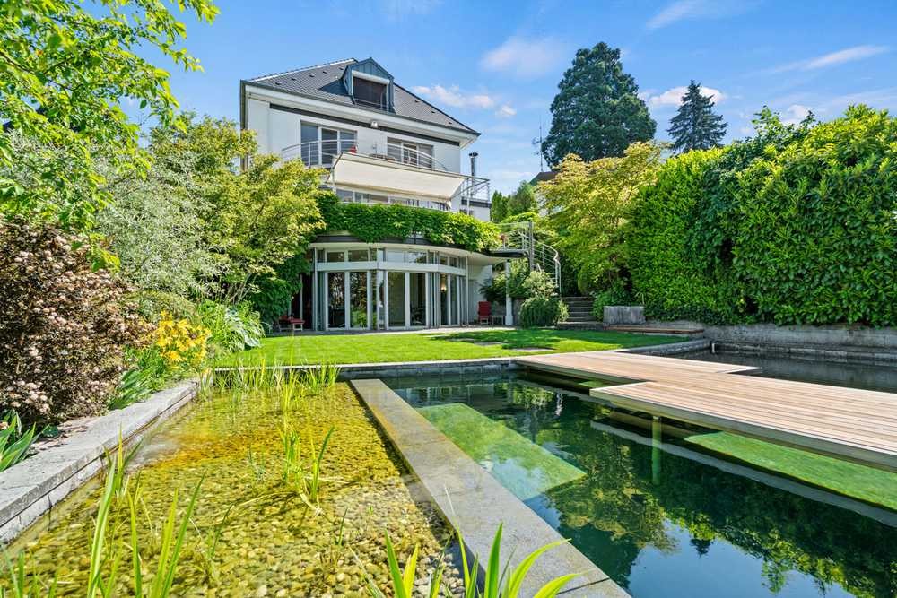 Die Villa aus dem Jahre 1924, die zuletzt im Jahr 2025 saniert wurde, besticht durch ihre wunderschöne Panoramalage sowie durch ihre Aufteilung. Der Wohnraum verteilt sich über vier hochwertig ausgebaute Etagen mit insgesamt drei Balkonen und einem einmaligen Sonnendeck mit modernem Schwimmteich. Das Entrée befindet sich im Erdgeschoss, das neben Küche, Ess- und Wohnzimmer über ein Gäste-WC sowie einen großzügigen Balkon mit Treppenzugang zum Garten verfügt. Im Gartengeschoss befindet sich ein wunderbar heller, geräumiger Wohnraum mit schwellenlosem Zugang zum Garten, Schwimmteich und Sonnendeck, ein Gäste-WC, eine Sauna mit Fitnessraum sowie Abstell- und Hauswirtschaftsräume. Im 1. Obergeschoss befinden sich aktuell drei Schlafzimmer, wovon zwei über einen eigenen Balkon verfügen, ein Ankleidezimmer, ein hochwertig ausgebautes Badezimmer sowie ein Gäste-WC. Die Galerie im Dachgeschoss lenkt den Blick über das Überlinger Ufer auf den Bodensee sowie die Alpen und bietet weiteren Raum zur persönlichen Entfaltung, sei es als Kinderzimmer, Gästebereich oder Home-Office-Arbeitsplatz. Des Weiteren befindet sich die Heizungsanlage im Dachgeschoss. Eine sehr großzügige Doppelgarage bietet Platz für zwei große PKW, Fahrräder und Motorräder. Auch der Hof mit schmiedeeisernem Tor bietet ein repräsentatives Entrée und Platz für zwei bis drei weitere Fahrzeuge, sodass auch Ihre Gäste bequem vorfahren können.