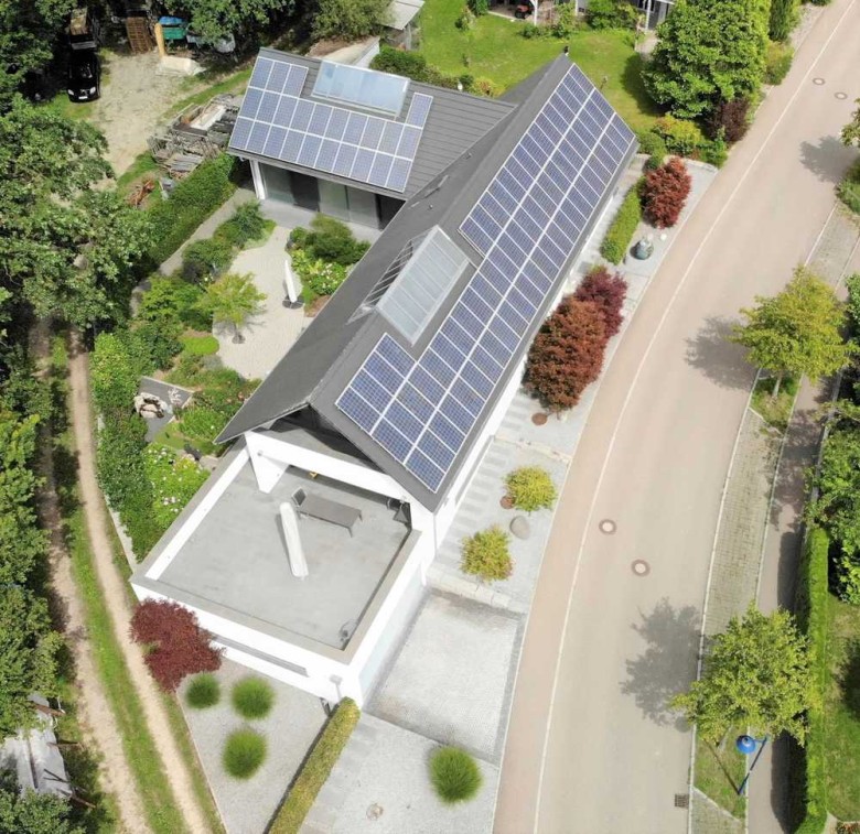 Bei diesem exklusiven Einfamilienhaus handelt es sich um eine Immobilie, welche sich durch eine luxuriöse Ausstattung und tollem Design auszeichnet. Das Objekt bietet drei attraktiven Schlafzimmer, zwei Badezimmer, sowie einem WC für Gäste. Die Schlafzimmer sind im Moment aufgeteilt in Hauptschlafzimmer, Gästezimmer und Atelier. Das 37 m² große Hauptschlafzimmer lässt keine Wünsche offen. Der begehbare Kleiderschrank, der Ausblick in den eigenen Innenhof, sowie der direkten Zugang zum Bad, bieten jeden Luxus. Das Bad ist ausgestattet mit Sauna, Dusche (mit Duschhimmel) und einer freistehenden Badewanne. Das ganze Erdgeschoss ist nach Norden und Westen mit großen Fensterelementen ausgestattet. Diese können durch das Schiebesystem individuell geöffnet werden. Die ca. 60m² große Terrasse verbindet den ca. 72m² großen Wohn-und Essbereich mit dem Garten. Auch die, in die Fenster integrierten, elektrischen Lamellenschalosien zeigen den hohen Standard dieser Immobilie. Im Dachgeschoss befinden sich zwei zusätzliche Schlafzimmern, ein Bad und einen Abstellraum. Beachten Sie, dass es sich hierbei um ein barrierefreies Objekt mit Aufzug handelt. Das Haus wurde im Jahr 2008 erbaut, und mit einer Erdwärmeheizung ausgestattet. Diese leitet die Wärme über eine Fußbodenheizung in die Wohnräume weiter. Im Wohnzimmer und im Bad, befindet sich je eine zusätzliche Wandheizung. Über das EDV/Bussystem können Sie Ihre Haustechnik per Smartphone oder Tablett steuern. Zur Immobilie gehören eine Einbauküche und mehrere Einbauschränke. Der Keller, welcher sich mit der Garage verbindet, bietet Ihnen außerdem praktischen Stauraum. Auch finden Sie im Untergeschoss einen Waschraum mit Wäscheabwurfschacht und einen Weinkeller. Besonders toll ist die großzügige Grundstücksgröße von 1.025 Quadratmetern, die Ihnen im Sommer eine private Fläche im Freien bietet. Das massiv gebaute Gartenhaus bietet Ihnen genügend Platz für Gartenmöbel und Gartengeräte. Die auf dem Dach verbaute 15,54 Kw Photovoltaik Anlage leistet Ihnen bis ca. 2030 Finanzielle Unterstützung mit 47 Cent/Kwh.